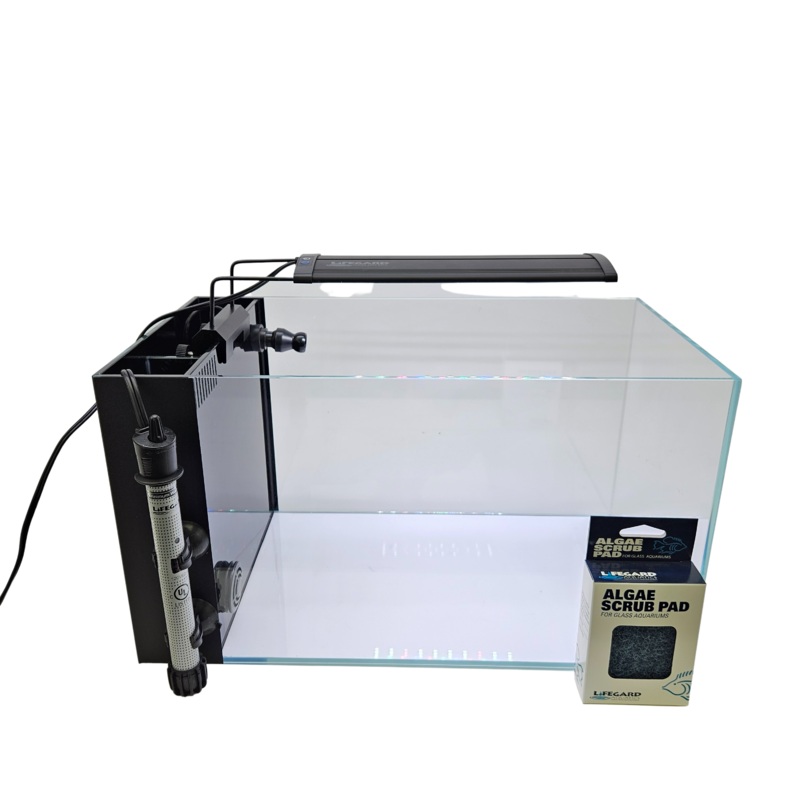 LIFEGARD 7.43 Gallon Crystal Aquarium Peninsula Series – Low Iron Ultra Clear Beveled Edge Glass includes a built-in Side filter with Quiet One Pump, Mechanical Filter, Biological, Carbon Media, Directional jet and Top or Bottom Drain.