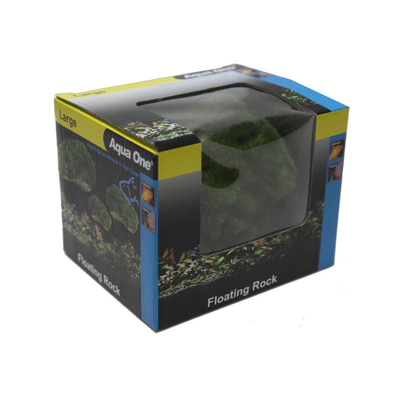 Aqua Ones Floating Rock adds realism and captivating movement to your aquarium.The Floating Rock design replicates a moss covered lava stone, with an adjustable cable to hold it in position, so that you can achieve your aquascaping vision.The Floating Rock