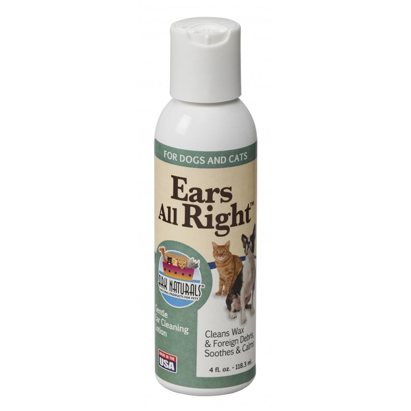 A gentle ear cleaning lotion formulated to clean and maintain your pet's ear health. The inside of your dog's ear is warm and moist. It's a perfect breeding ground for bacteria. Keeping ears cleanwill help. Ears All Right is an all natural botanical formul