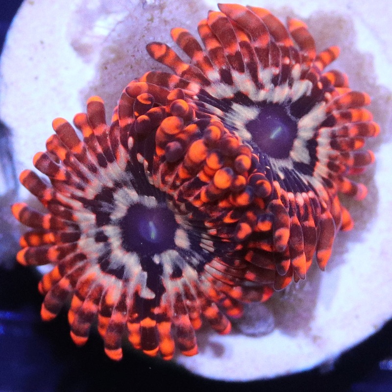 Palythoa sp. -The Biota Utter Chaos Paly is cultured here in our Florida facility.This coral does best in moderate flow and moderate to high lighting. They obtain most of their nutrition from their photosynthetic zooxanthellae, but will benefit from microf
