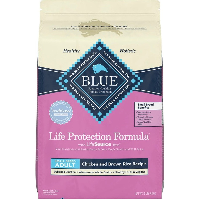 - SMALL BREED DOG FOOD: Specially formulated for the wellness of adult small breed dogs, BLUE Life Protection Formula Small Breed dry dog food contains increased levels of protein and carbohydrates to meet the energy needs of smaller dogs with a kibble size ideal for smaller jaws.