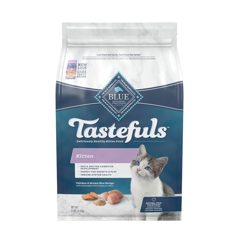 Deliciously healthy Blue Buffalo Tastefuls dry kitten food starts with real meat and is specifically formulated for your growing kittens needs. Each recipe contains DHA and ARA to support brain and eye development, plus Taurine an essential amino acid to support heart and eye health. Give your new best friend a healthy head start with BLUE Tastefuls dry cat food.