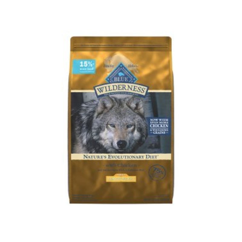 Satisfy the spirit of the wolf with meat-rich BLUE Wilderness. This high-protein recipe contains more of the delicious deboned chicken your dog loves, plus a controlled amount of calories to help maintain a healthy weight.
