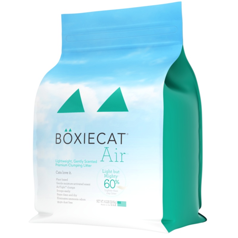 Boxiecat Air litter is light on what you dont want but mighty on what you need because we believe you should experience lightweight litter without compromising on performance. AirTight clumps lock in odors, scoop easily, and dont crumble. Enjoy a super clean litter box while saying goodbye to weight, odors, and dust. Boxiecat Air is plant based, renewable, biodegradable, sustainable, and USA sourced.