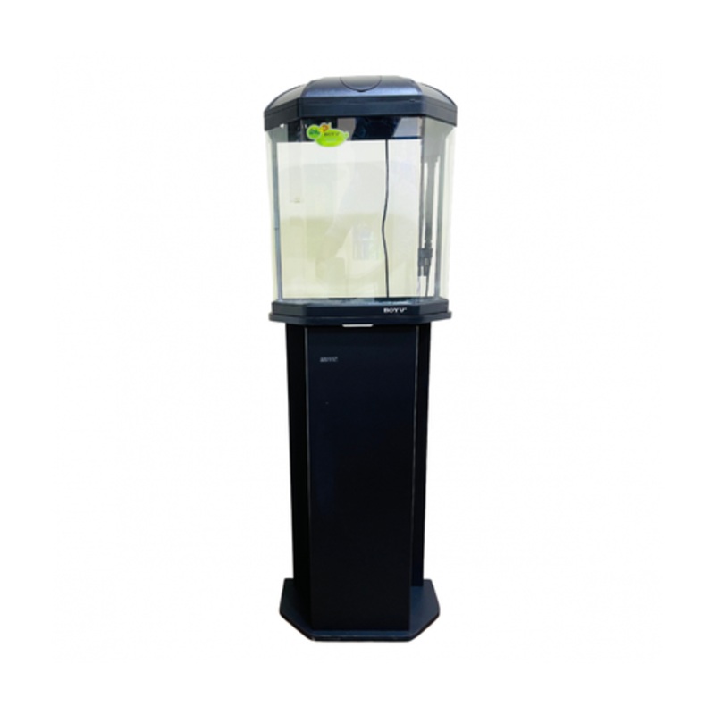 The BOYU LJ-380 25L Aquarium + Cabinet is a refined and stylish hexagon-shaped aquarium that is ideal for beginners looking for a small tropical or planted tank. It has a built-in hood lighting system with a single PL-11W tube and a 10 000K colour temperature. It includes a built-in 290L/H hood filtration system and a pump system. The flip-top hood makes it simple to access and clean the aquarium. Includes a modern, high-quality pedestal cabinet. A high-quality filtration system improves the living conditions of your fish and plants. It has a low power usage of 4W and comes with a high-quality matching cabinet that is elegantly designed. Suitable for keeping fish in freshwater, tropical, or marine environments. FEATURE:1.Energy saving high intensity lighting system:low energy consumption and high efficient light-tube.2.”Flip-top” upper lid:back-turn aquarium lid, easy maintenance.ruggedized ABS plastic.3.Upper bio-filter system. Tank Size: 25L | 401mm (L) x 214mm (W) x 475mm (H) (Cabinet Height 80cm) Filtration System: 290L/H Lighting System: PL-11W Note: Does not include a heater, Fish, and Decorations WARNING:This aquarium is designed and recommended for use in fresh or brackish water. However, most of its components are inert to seawater and bio-compatible with saltwater and reef organisms, so it can house fish and invertebrates compatible with the size of this aquarium. Due to the specific biological needs of many marine organisms, they require additional specific equipment not included, and it may be necessary to modify the aquarium to accommodate certain equipment, such as protein skimmers, water recirculation equipment and specific lighting. Request the support of a specialist to carry out these extensions.