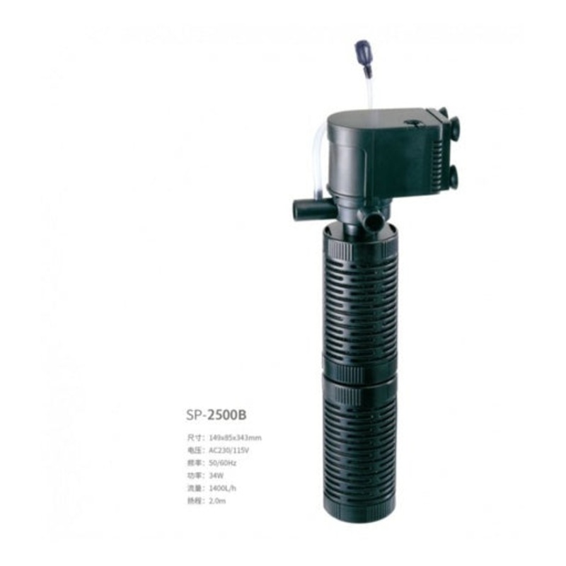 FEATURE This product consists of the diving pump and biochemical filter. The pump body is made from diecast ABS engineering plastic and can endure shock and rust. Made of stainless steel, the pump shaft can be used in freshwater and seawater. The motor is sealed in the body with resin. With good waterproof performance and high isolation intensity, with the protector for heat, it is safe and reliable. Multifunctional design, various purposes in a machine-pumping, adding oxygen, filtering and UV sterilizing4in 1 (SP-B SP-C series do not include UV light). With a portable assembly structure, the filer can be easily set with 1~2 filter cylinders. adopting special biochemical filter cotton.It is most suitable for cultivating fine nitrobacteria and cleaning the water.