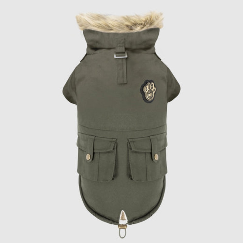 Bundle up your dog for cold walks in this warm winter parka.FEATURES YOULL LOVE- Faux-down insulation helps keep your dog warm- Water-resistant cotton canvas exterior- Soft sherpa lining- Faux-fur trim on the hood- Sleek style with dual velcro closure Cana