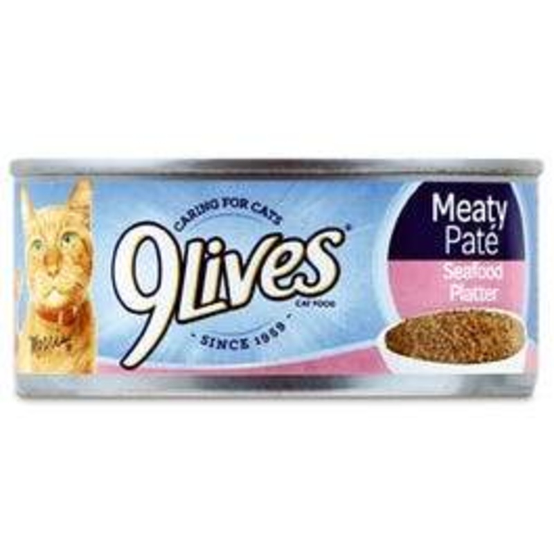 5.5 OZ, 9 Lives, Seafood Platter Canned Cat Food.