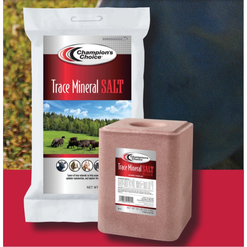 Champions Choice Trace Mineral Salt is a specially formulated product designed to help meet the salt and trace element requirements of most livestock. Trace minerals complement the diet to help promote digestion, growth, maintenance of body tissues, proper
