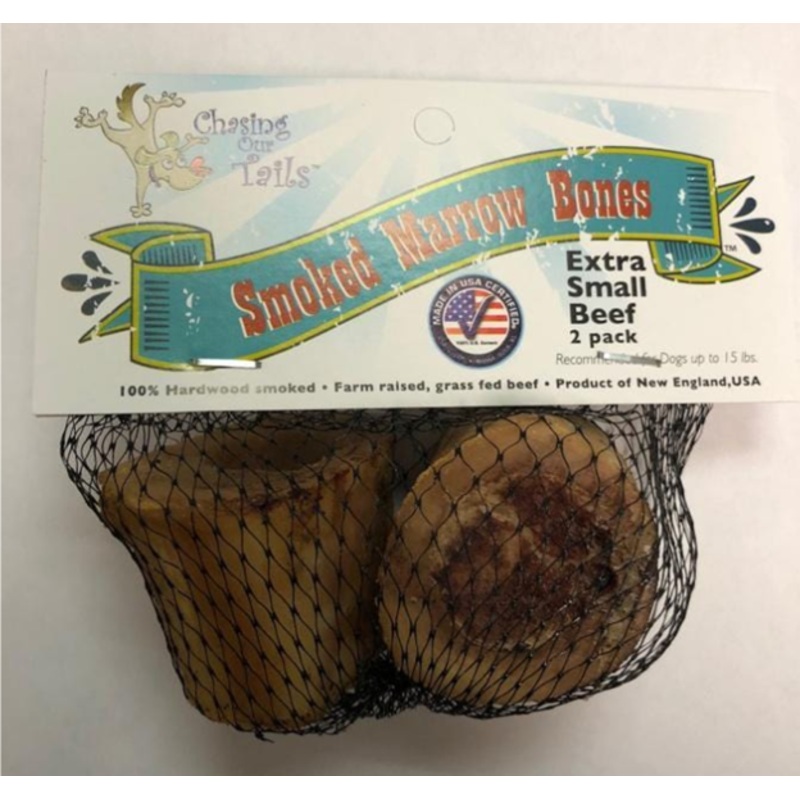 Sourced from GRASS-FED Maine & Vermont Cattle. Lightly brined with NO other additives or preservatives.Chasing Xs Smoked Marrow Bones
