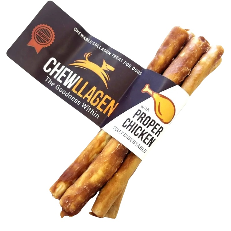 The Chewllagen Mini Roll 5 Inch Chicken is a tasty, bite-sized chew perfect for small dogs. Made with collagen and coated in delicious chicken flavour, this rawhide-free treat supports healthy joints, skin, and coat while promoting dental health. Ideal for
