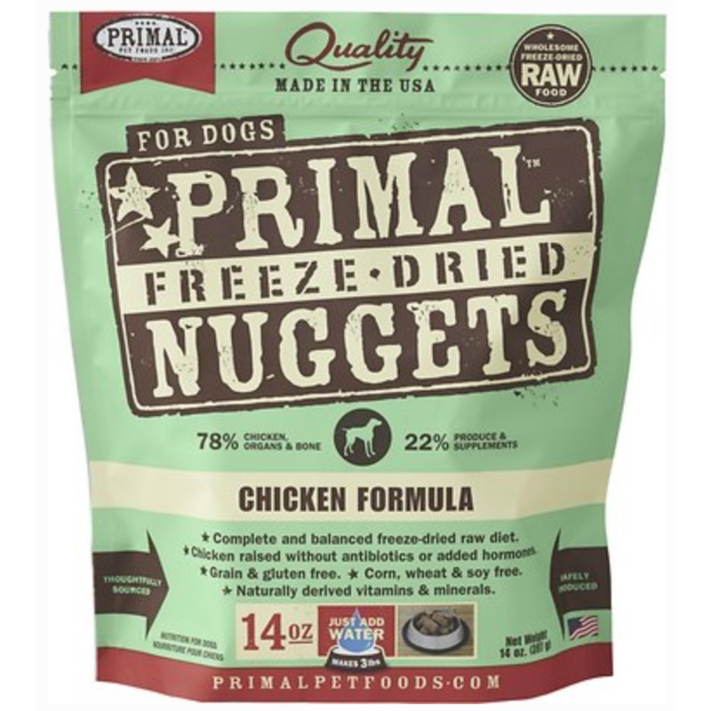 Primal Chicken Formula Nuggets Grain-Free Raw Freeze-Dried Dog Food offers your hungry pooch all the benefits of a safe and wholesome raw-food dietwithout you having to grind, chop, measure or mix the ingredients yourself! Taking great pride to source only