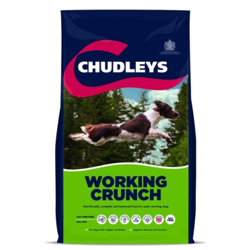 Chudleys Working Crunch is perfect for dogswho are highly active. It contains high levels of protein to support muscle strength and recovery as well as added fat content to keep them going for longer.