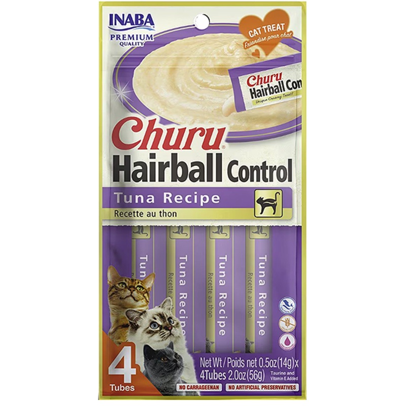 Discover the purrfect hairball solution with Churu Hairball Control Tuna Recipe Grain-Free Lickable Cat Treats! Like all Churu treats, this creamy concoction is made with wild-caught tuna and packs a moisture punch with 91%. Each pouch is only six calories