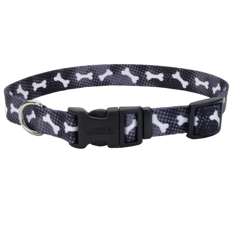 Coastal Adjustable Styles Dog Collar Black Bones XS 8-12 inch