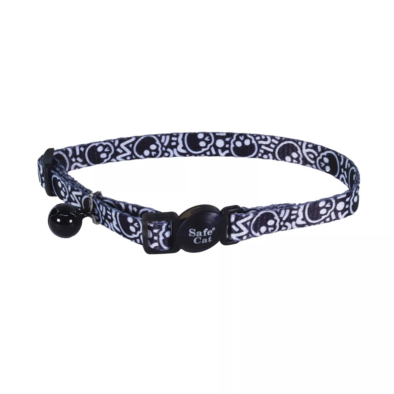 Coastal Safe Cat 3/8in Wide 8-12in Fashion Breakaway Collar Black Skulls