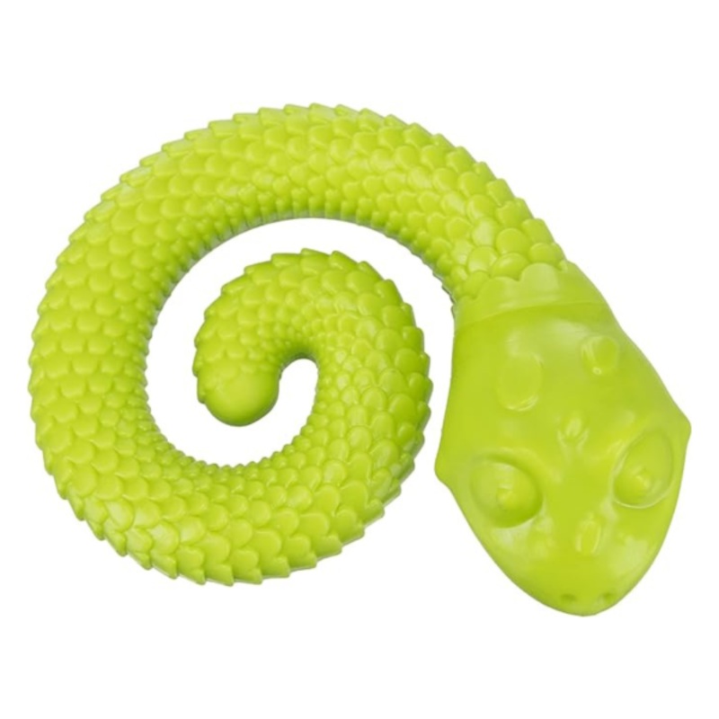 Coiled Snack Snake Slow Feeder & Treat-Dispensing Dog Toy Green 7 in