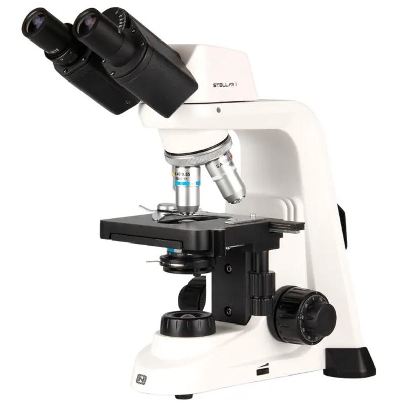 The Stellar Series teaching biological microscopes adopts a new structural design and updated appearance. This microscope comes with DIN Achromat Plan objectives, mechanical stage, coaxial adjustment, built in cord wrap, built in slide holder and LED illum