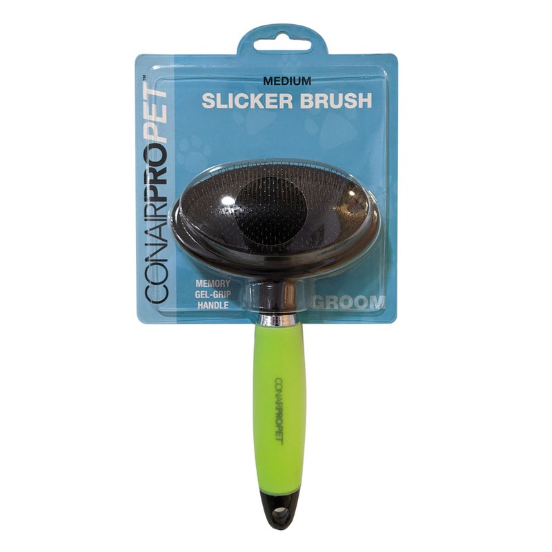 MEDIUM SLICKER BRUSH: This dog slicker brush is ideal for eliminating mats, tangles and loose hair from your dogs coat METAL PINS: The firm, metal pins effectively brush through the coat to significantly reduce shedding COMFORTABLE: Groom comfortably with
