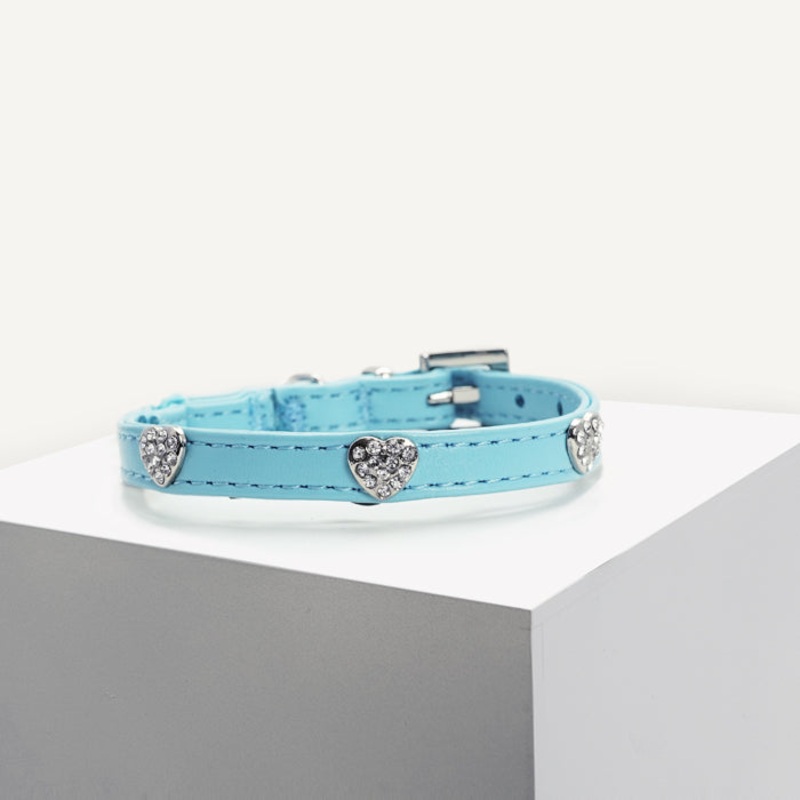 Dan & Sam – Vegan Leather Cat Collar (Blue Hearts) Small