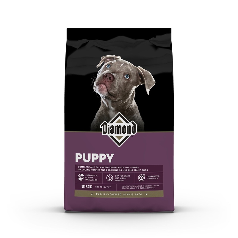The nutrition a puppy receives in the first year can influence overall health later in life. Diamond Puppy is precisely formulated to meet the special nutritional needs of rapidly growing puppies. Enhanced with DHA for proper brain and vision development,