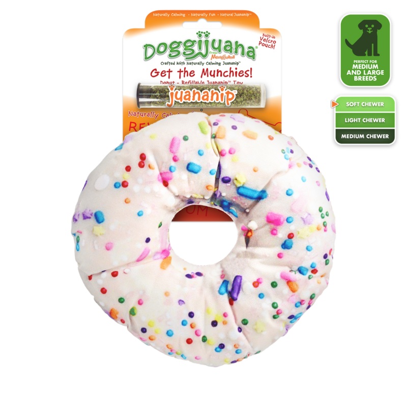 Who says donuts are just for breakfast? The Doggijuana Sprinkle Donut Plush Toy is the sweetest way to treat your pup any time of day! Perfectly sized for medium and large breeds who love a soft chew, this playful donut is topped with colorful sprinkles an