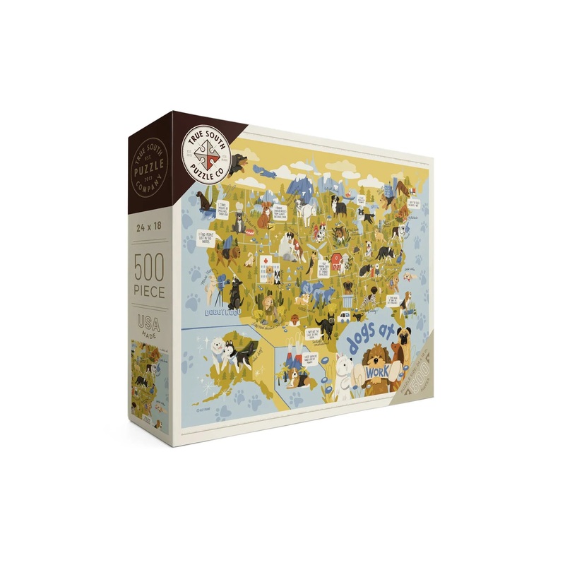 Do you howl for a good puzzle? This dog filled map shows all kinds of good dogs doing great work across the United States.500 pieces