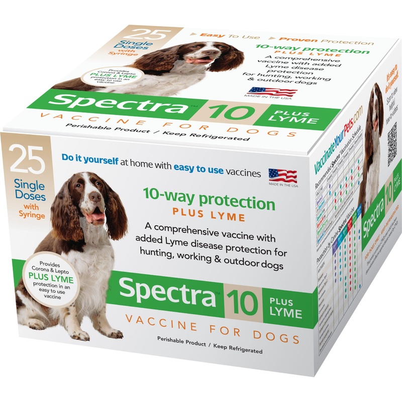 Spectra 10 + Lyme vaccine is a combination of immunogenic, attenuated strains of CDV, CAV2, CPIV, and CPV type 2b, propagated in cell line tissue cultures. The diluent contains killed CCV and Bburg antigens with Leptospira bacterial antigens. The CAV2 frac