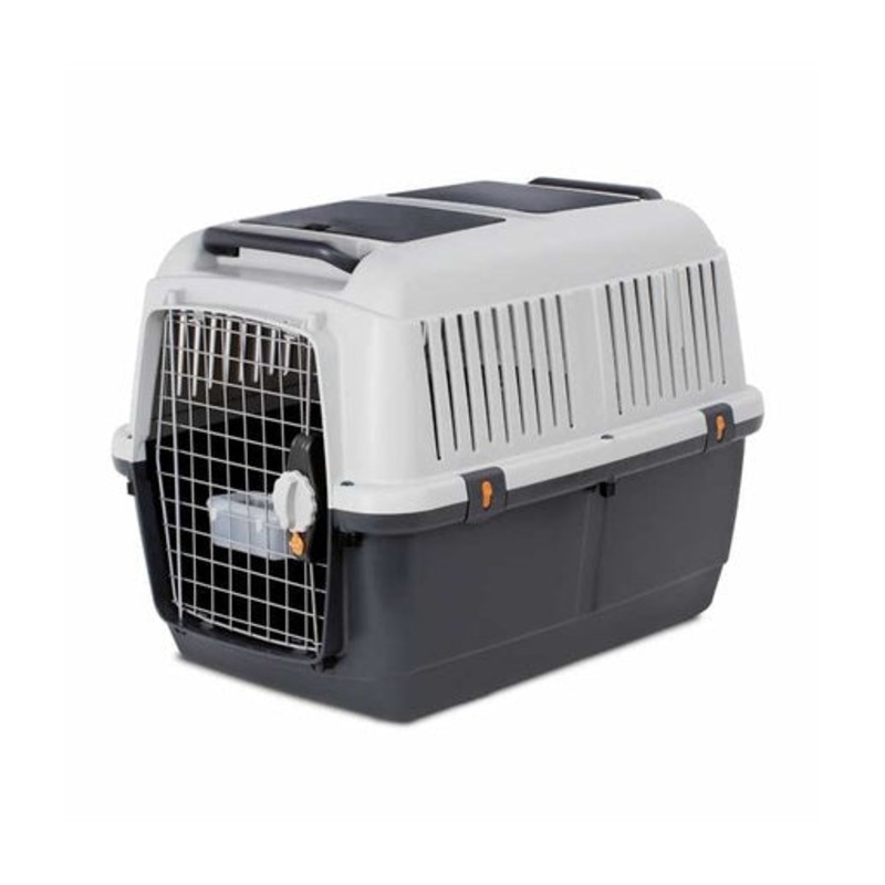 IATA transport box for dogsWith this duvoplus ‘Buddies on the Gooo’ transport crate, you can take your buddy with you wherever you go. Ideal for short trips as well as long car journeys and even air travel – the Bracco is IATA-approved and complies with their strict regulations, meaning your pet can travel safely by any means of transport. The box is robust and has a large metal door with extra strong yet easy-to-open locks. The sides have ventilation openings, ensuring your pet will always have enough air. There are two strong handles on top for optimum ease of use for pet owners. The lid can be removed from the base, making the crate easy to clean. Includes drink and food containers. Suitable for dogs of 8 to 25kg.