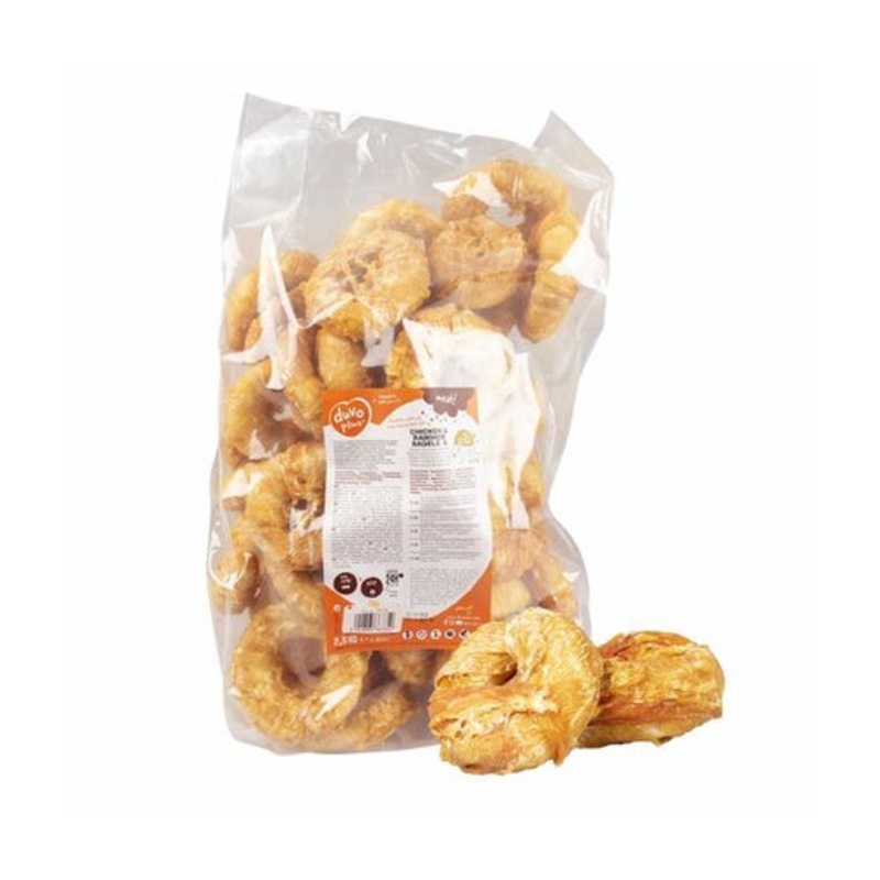 Treat your dog to the delicious Meat! Chicken & Rawhide Bagels Small from Duvoplus! These chewy bagel snacks are designed to keep your furry friend happy and engaged.