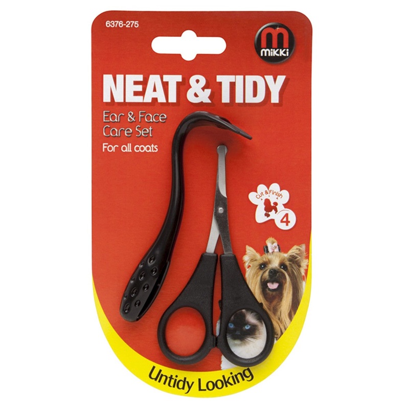 Ideal for trimming around the pets face and paws.Rounded tips for safety.Precise cutting blade for great results.The plastic comb can be used for combing long hair away from delicate areas before and after cutting to avoid cutting any skin.Mikki Ear & Face