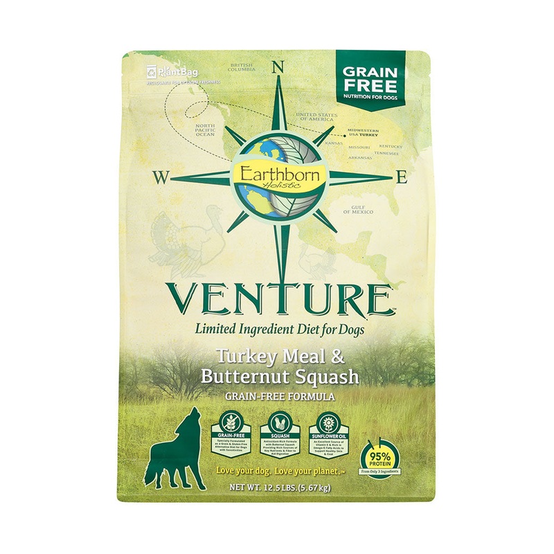 Our Turkey Meal comes from regional poultry sources in the heart of Midwestern USA. The Midwest is made up of many family-owned turkey farms, established generations ago. Turkey farmers take pride in raising their flocks through humane animal care, nutritious diets and comfortable and safe living environments. Dedication to these daily efforts ensures the production of safe, quality turkey products. Turkey is great for your Thanksgiving table and its a great meal for your dog too. Earthborn Holistic Venture Turkey Meal & Butternut Squash is a limited ingredient, grain-free diet. It also features antioxidant-rich butternut squash. Handpicked from Central America, butternut squash provides rich sources of key nutrients and fiber to help your dogs digestive system.