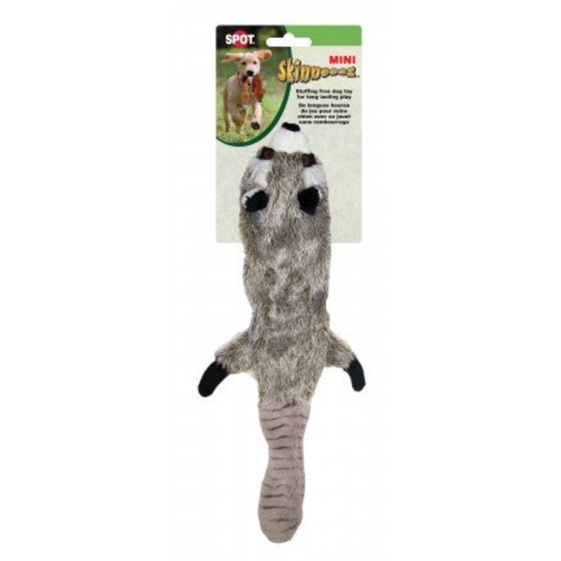 Skinneeez stuffing free dog toy satisfies a dogs natural hunting instinct. With no stuffing to rip out, they offer long lasting play. The realistic mini raccoon design provides a flip flopping action dogs love.