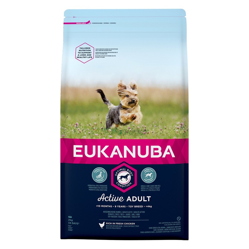 Eukanuba Active AdultToy Breed Chicken for your dog to eat.Adulttoy breed dogs (10 months - 9 years).rich source of proteinsrich in nutrientshelps to the muscle development