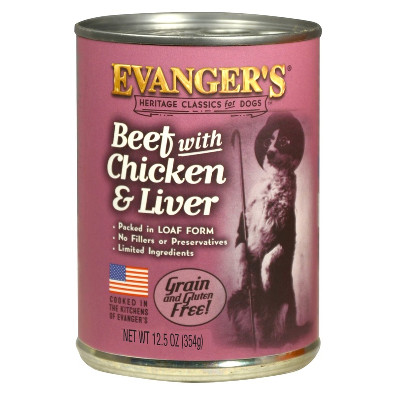 Evanger's Beef, Chicken & Liver for Dogs is a veterinarian approved, all natural can food with no preservatives, no artificial colors and no salt added. It is vacuum packed and cooked in the can to seal in the nutritional benefits, making it a very palatab