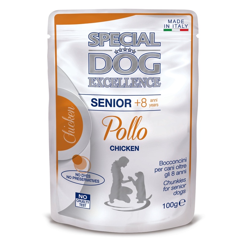 Special Dog Excellence by Monge | Senior Dog Wet Food with Chicken | Super Premium Complementary Wet Dog Food | Chunkies in Pouch - 100g
