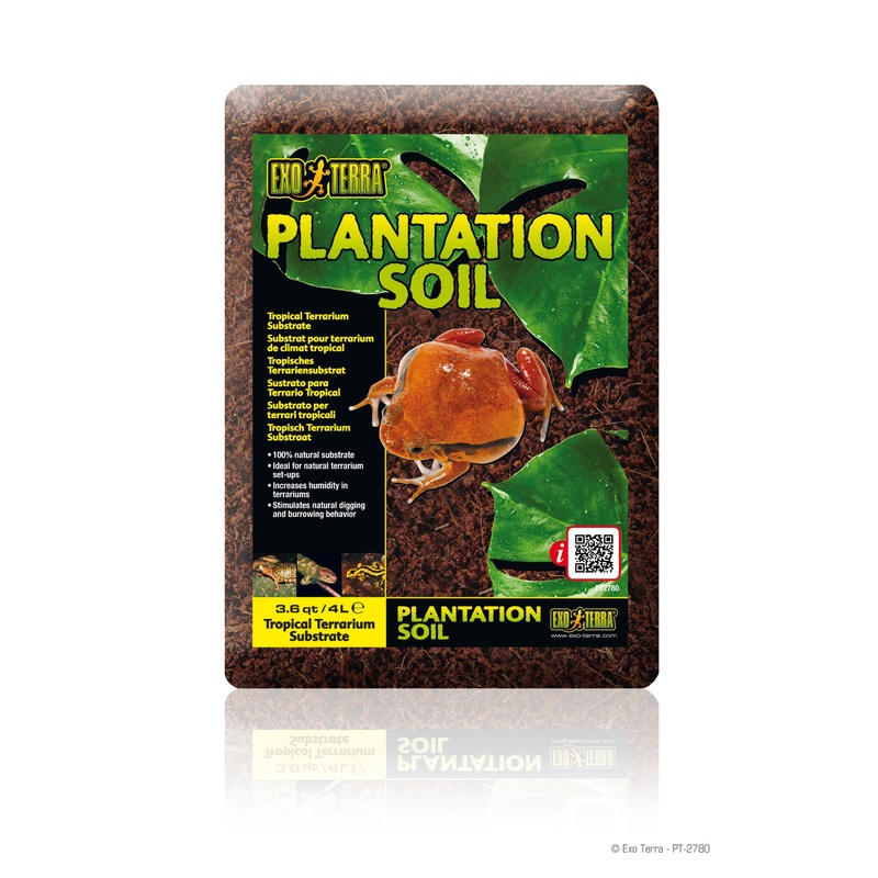 100% natural substrateIdeal for natural terrarium set-upsIncreases humidity in terrariumsStimulates natural digging and burrowing behaviorNutritional substrate for live plantsExo Terra Plantation Soil is made from compressed coconut husk fibre from the pla