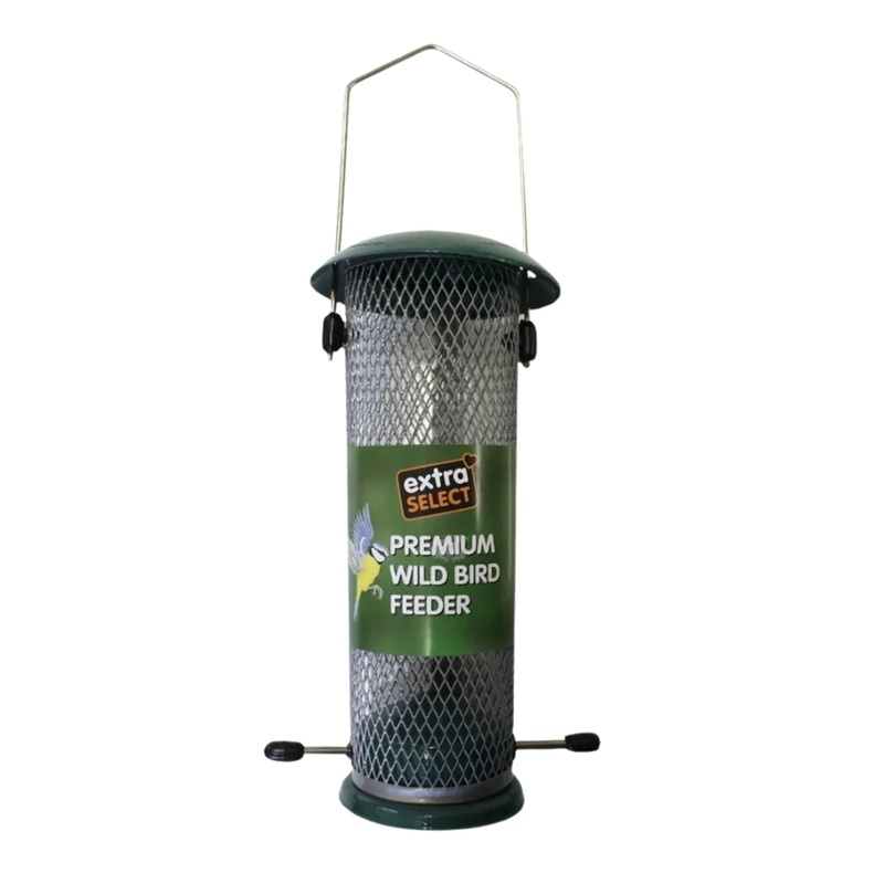 The Extra Select Premium Sunflower Heart Feeder is designed for feeding sunflower hearts to wild birds. Made from durable metal with a modern design, it features an easy-to-fill lifting lid and two perches with rubber stoppers for comfortable feeding. Idea