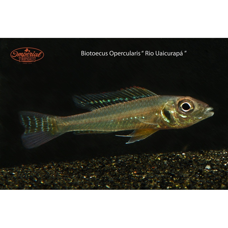 Remarks: Biotoecus opercularis is a small and fragile cichlid that requires soft water. Aggressive fish should not be kept with Biotoecus. They prefer a sandy substrate with lots of leaf litter an places to hide. Acidic conditions should be given, as this fish does not like water above 7.0 pH.