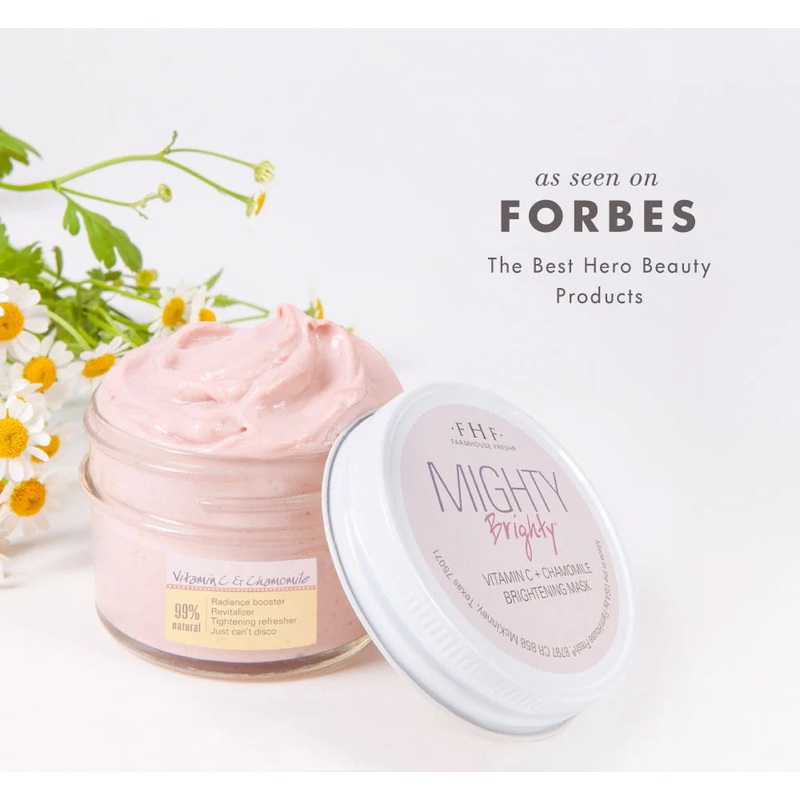 This beautiful mask blend includes organic oranges, retinol, brightening clays, fermented lemon peel extract, and antioxidant-full cucumber & watercress extracts grown on our farm.