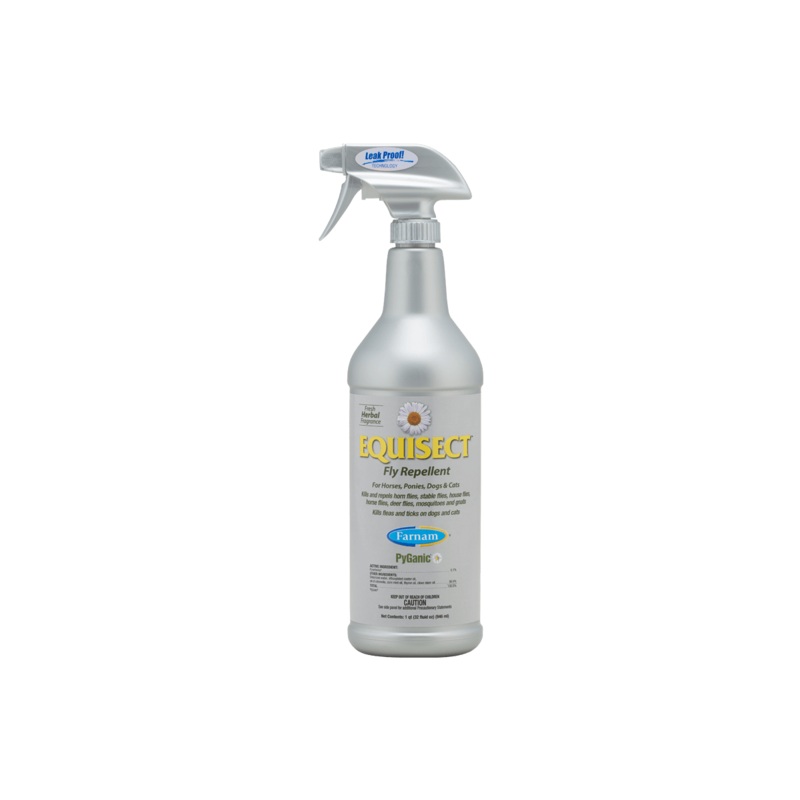 Key BenefitsEquisect Fly Repellent works without irritating sensitive skin. Never greasy and doesn't attract dust and dirt. Your horse will enjoy relief from annoying pests, while you enjoy the fresh, herbal scent of botanical and essential oils.Kills and