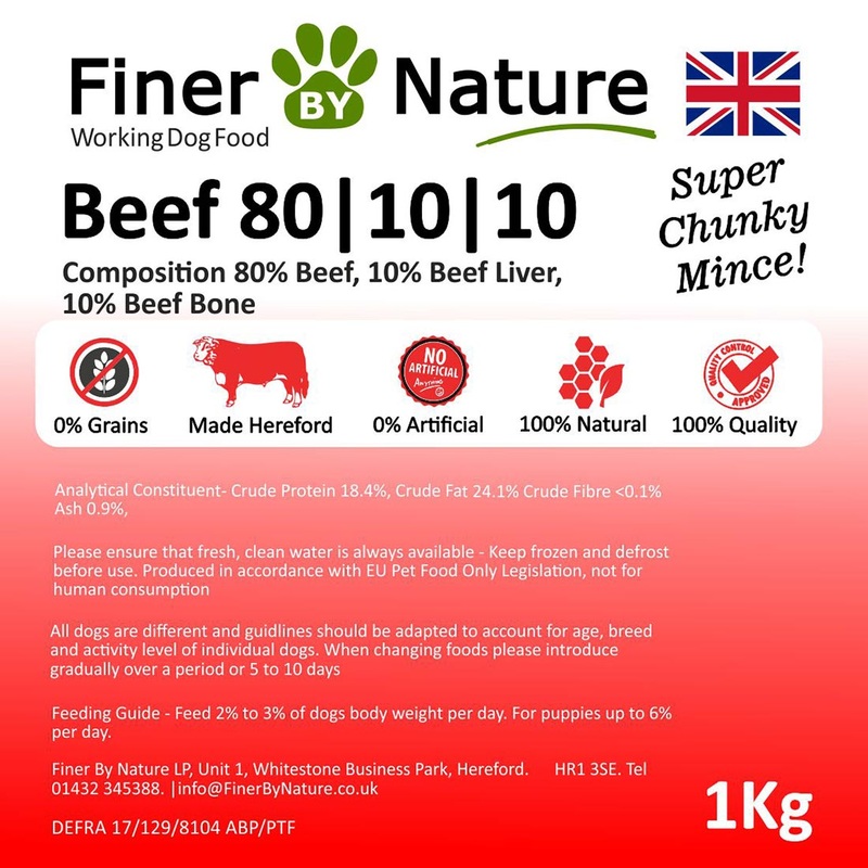 - 100% Fresh UK Beef (Meat, bone, liver)