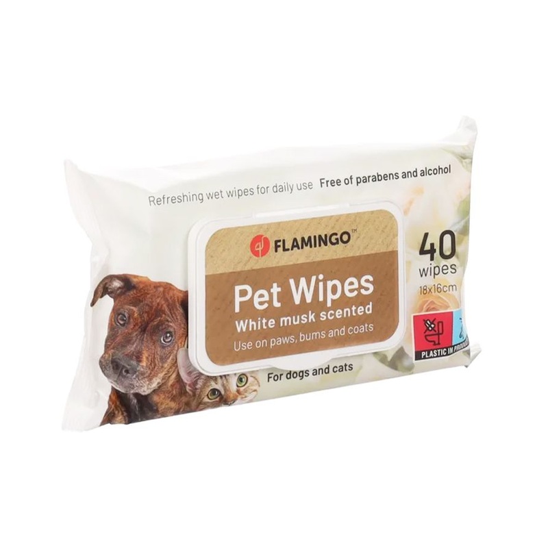 Flamingo Reini Universal White Musk Cat & Dog Pet Wipes 40pcs –