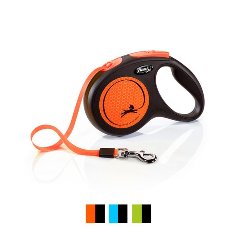 New Neon Tape 5 m5m tape leashMedium - for dogs up to max. 25 kgSmall - for dogs up to max. 15 kgSturdy tape in bright neon colorHighly reflective side panelsComfortable braking systemCan be customized with Multi BoxProduct weight: 300g approx.3 colours: o