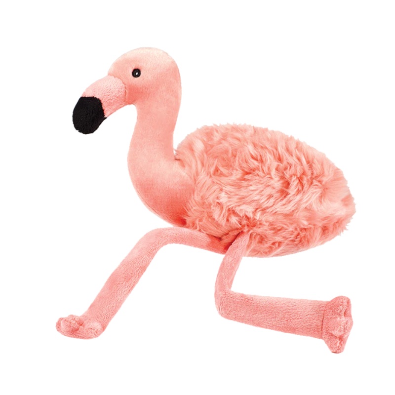 A group of flamingos is called a flamboyance, and Lola lives up to just that. Shes a pretty pink lady with stunning plush feathers. Her long legs and neck are perfect for dogs who want to shake and toss their toys