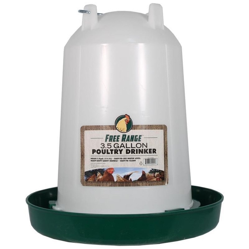This easy-fill, easy-clean poultry drinker is molded from long-life plastic with durable fountainIt features a twist-lock system and a hanger/carry-handleAccommodates up to 56 chickens or game birds
