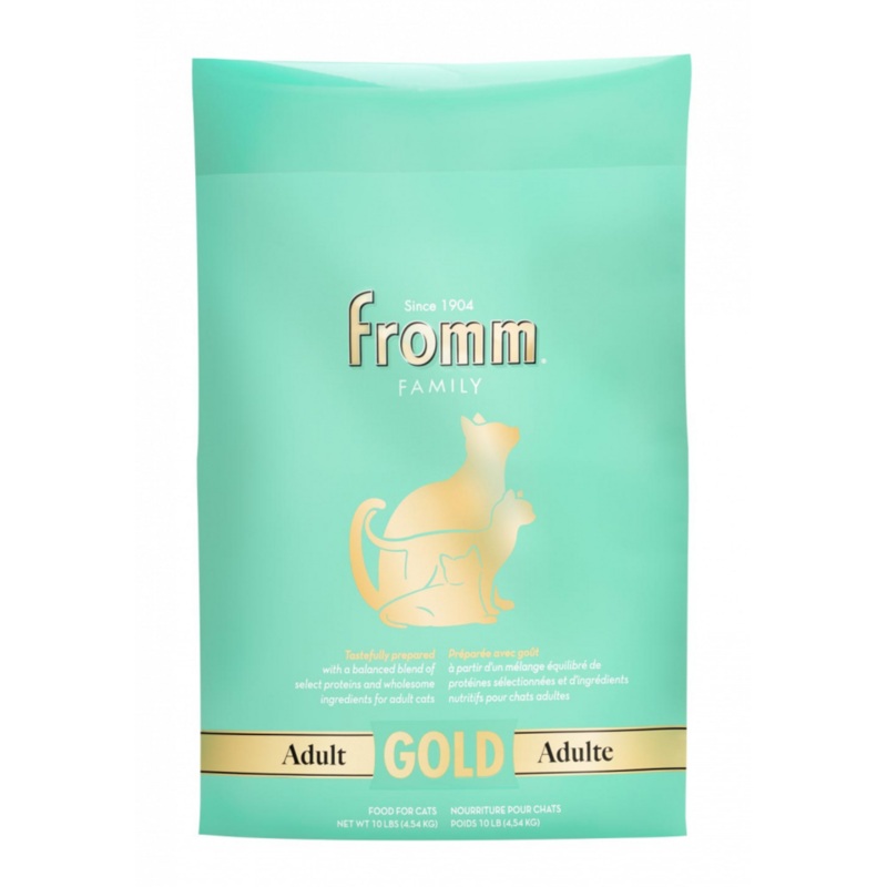 Tastefully prepared with a balanced blend of select proteins and wholesome ingredients for adult cats. Fromm Family Adult Gold Food for Cats is specially formulated to provide your normally active adult cat with complete and balanced nutrition.Fromm Family Adult Gold Food for Cats is specially formulated to provide your normally active adult cat with complete and balanced nutrition.Fromm Family Adult Gold Food for Cats is formulated to meet the nutritional levels established by the AAFCO Cat Food Nutrient Profiles for maintenance.