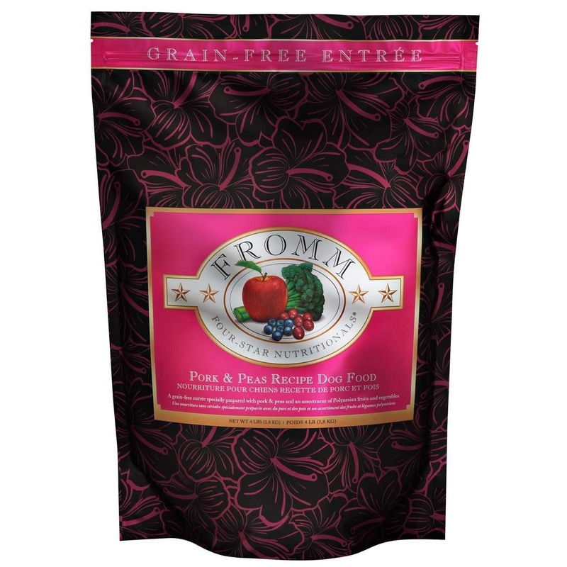 Fromm Four-Star Pork & Peas Recipe Dog Food is a Polynesian-style entre of pork and peas combined with an assortment of fresh, handpicked vegetables and fruits. This artisan recipe provides complete and balanced nutrition for dogs of all ages and, for variety, can be alternated with other Fromm Four-Star recipes.