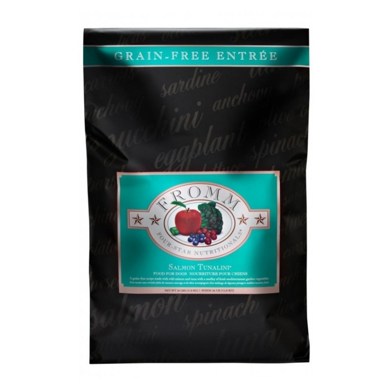 Fromm Four-Star Salmon Tunalini® Recipe Food for Dogs is an enticing grain-free entre with salmon, tuna, and an assortment of fruits & vegetables. This distinctive blend is specially prepared to ensure consistency, quality, and superior taste in each a