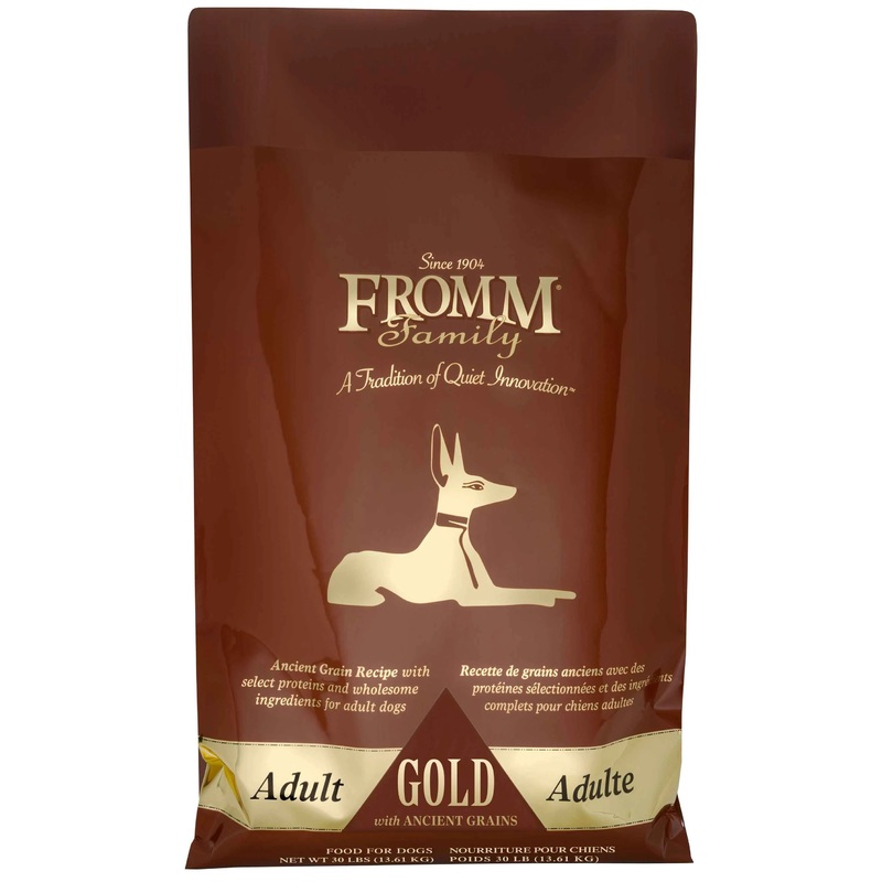 Available in other sizes 5lb size 15lb size~ Fromm Dog Ancient Gold is formulated with select proteins and whole grain goodness to provide your normally active adult dog with complete and balanced nutrition. It's enhanced with probiotics to aid digestion a